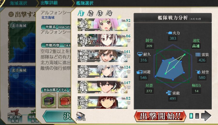 北方海域 アルフォンシーノ方面進出マップ(3-3)に出撃する。